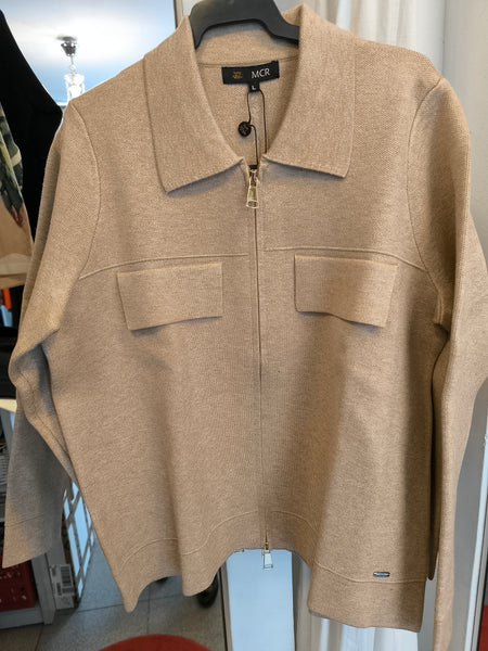 Chaqueta en punto grueso con cremallera dorada que se abre por abajo y por arriba.